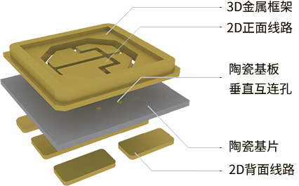 薄膜電路陶瓷封裝基板是一種通過磁控濺射薄膜金屬化與電鍍制程的技術(shù):即根據(jù)應(yīng)用需要,在高導(dǎo)熱的陶瓷基體上,采用薄膜金屬化及影像轉(zhuǎn)移方式制作2D金屬線路,然后采用TCV(Through Ceramic Via) 技術(shù)形成雙面布線間的垂直互連,最后采用堆疊技術(shù)獲得與陶瓷基體結(jié)合緊密的一體式3D金屬框架。基于薄膜電路工藝,通過磁控濺射實(shí)現(xiàn)陶瓷表面金屬化,通過電鍍實(shí)現(xiàn)銅層和金成的厚度大于10微米以上即DPC(DirectPlateCopper-直接鍍銅基板)。